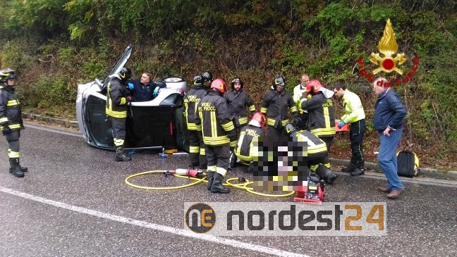 I pompieri arrivati da Schio e da Asiago anche con l’apporto del personale dell’antincendio boschivo, hanno messo in sicurezza l’auto e utilizzando divaricatori e cesoie sono riusciti ad estrarre la donna, che è stata presa in cura dal personale del suem 118 per essere portata in ospedale per controlli.
