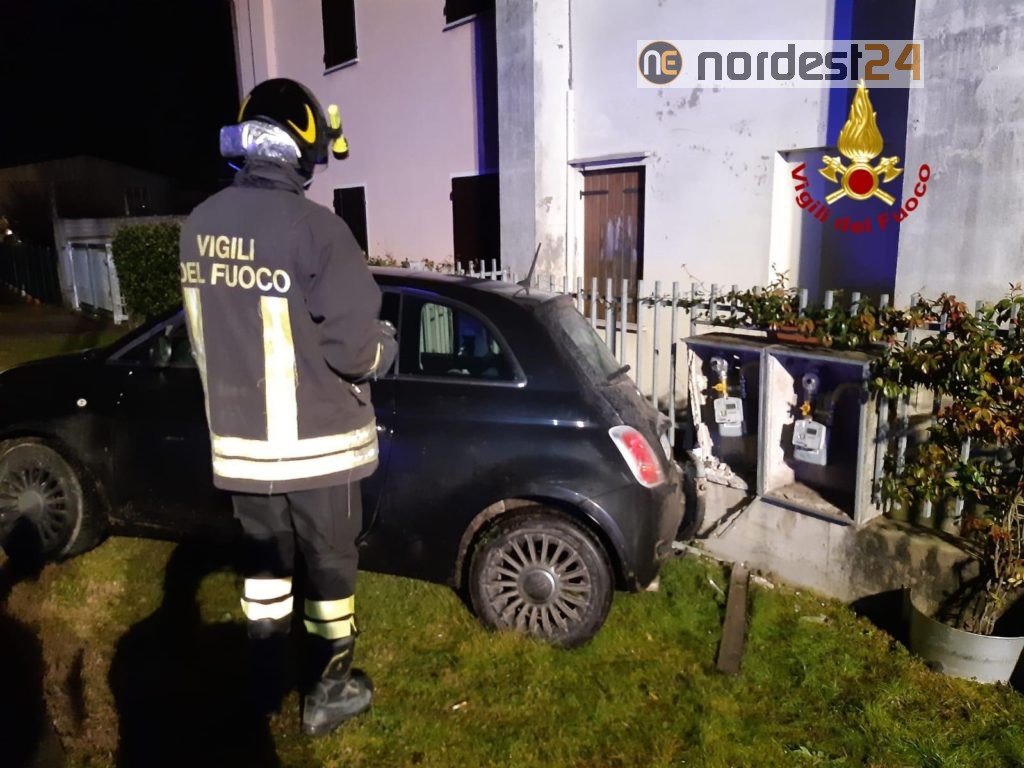 VILLA DEL CONTE (PD). Alle 4:45 di domenica, i vigili del fuoco sono intervenuti in via Maso a Villa del Conte in provincia di Padova per l'uscita autonoma di un'autovettura andata a finire contro la ringhiera di un'abitazione e contro la nicchia dei contatori del gas metano, che sono stati danneggiati: illeso l'autista.