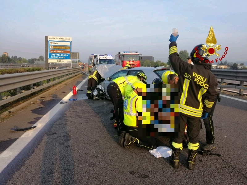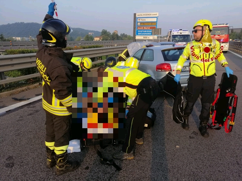 Alle 6:45 Vigili del Fuoco sono intervenuti al km 0,800 in tangenziale di Vicenza in direzione est per la fuoriuscita autonoma di un'auto: ferito un 41enne.