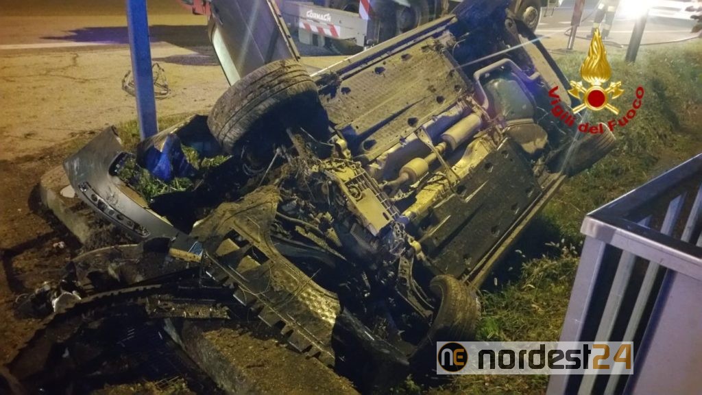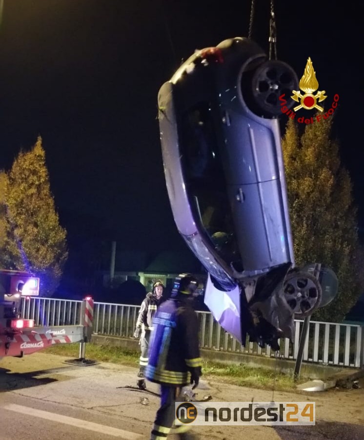 Le squadre dei pompieri arrivate da Mestre con due automezzi tra cui l’autogrù hanno messo in sicurezza la vettura, mentre il ferito un giovane uomo riuscito a venire fuori da solo è stato preso in cura dal personale del Suem 118 per essere poi trasferito in ospedale.