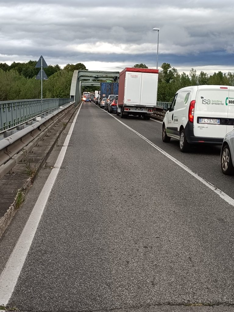 Pesanti ripercussioni alla viabilità con il traffico in tilt e una lunga colonna di auto in entrambe le direzioni