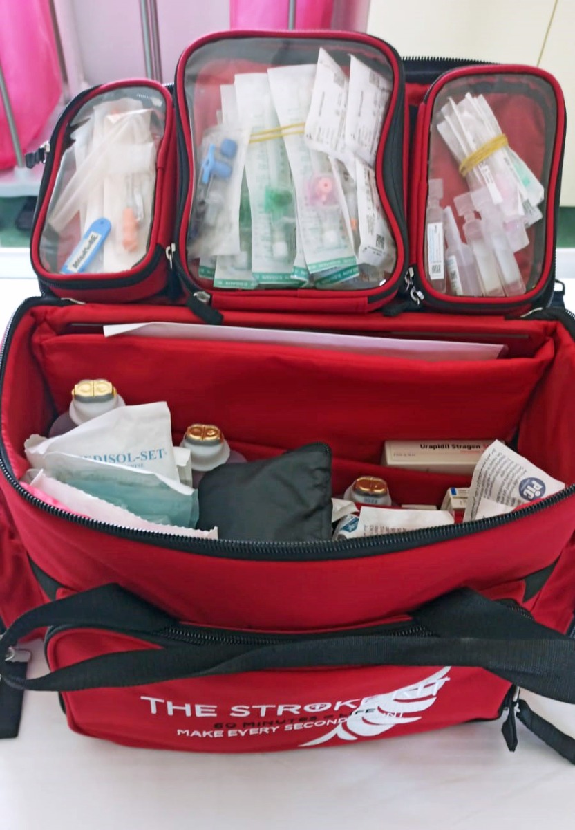 Per arrivare a somministrare la terapia in tempi così ridotti viene adottato anche un protocollo che prevede per il personale di Stroke Unit la possibilità di arrivare in sala TAC con una “Stroke bag” contenente tutto l’occorrente per somministrare il trombolitico subito dopo aver eseguito la TAC.