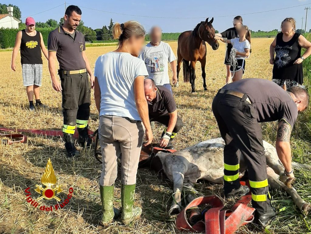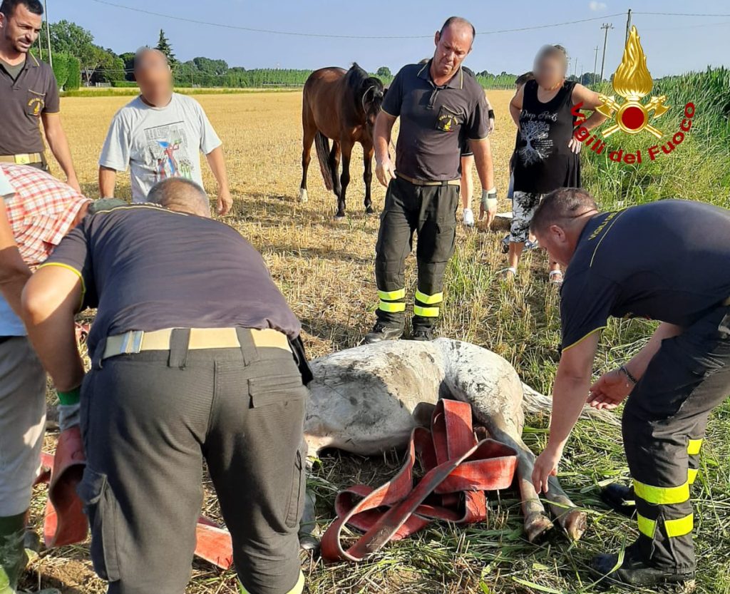 Pony cade in un fossato: salvato dai Vigili del Fuoco