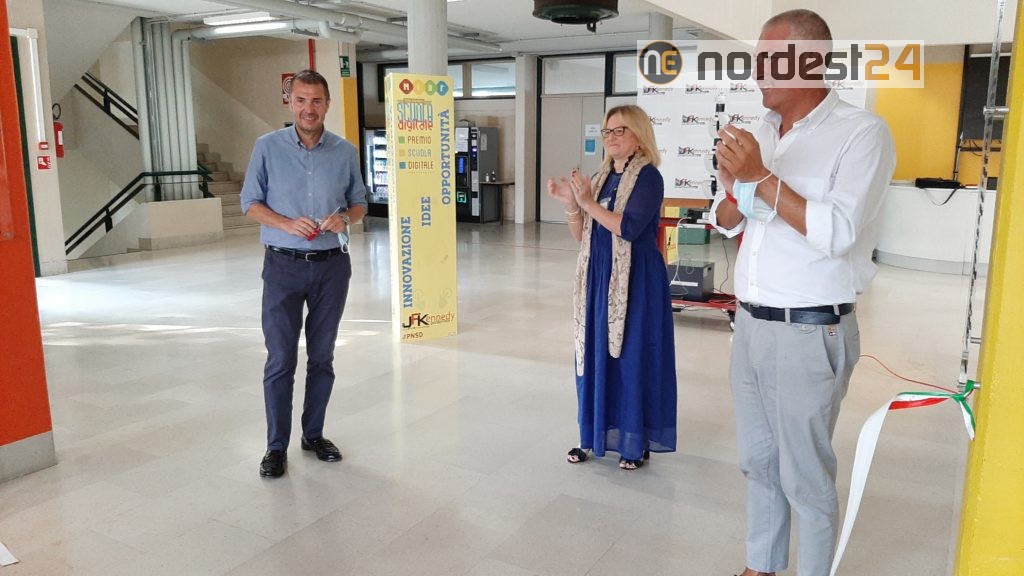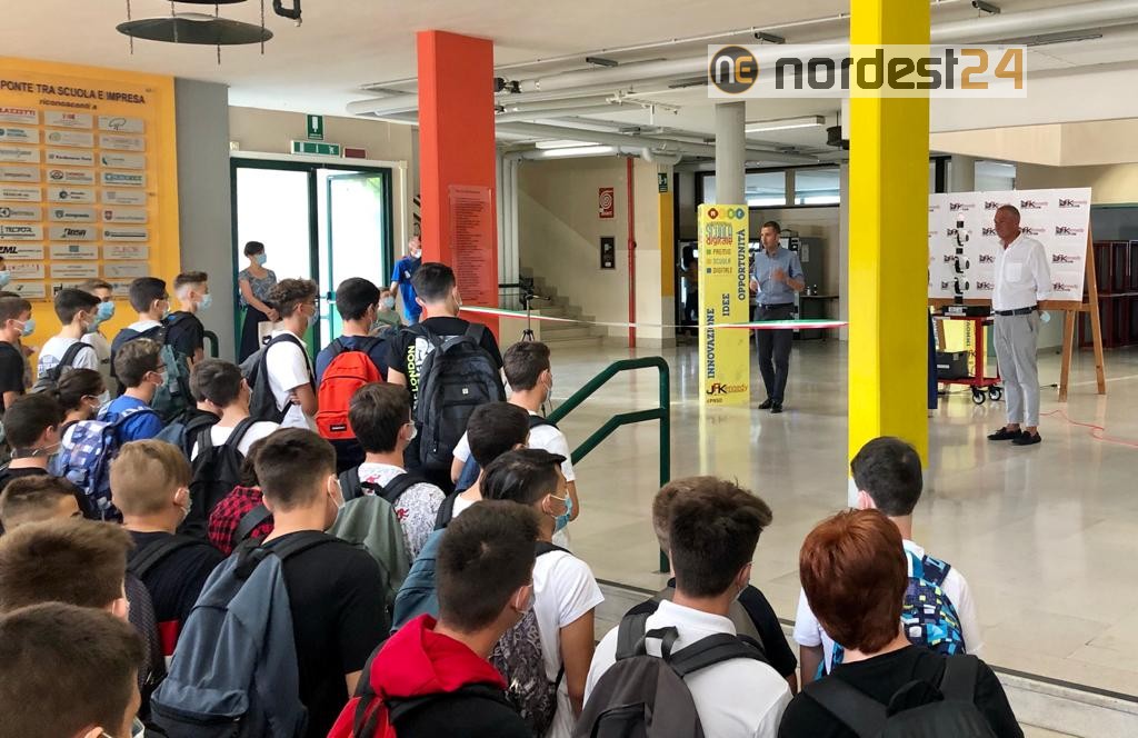 Pur non avendo competenza sulle scuole superiori, l’Amministrazione comunale ne ha comunque visitata una, il Kennedy. Qui, assieme a Ciriani e Basso, c’era la dirigente Laura Borin. Con loro un braccio-robot utilizzato per le esercitazioni degli studenti per conseguire il patentino della robotica. Con la supervisione del professor Salvatore Adamo, il robot ha consegnato le forbici al sindaco per tagliare il nastro che ha inaugurato il primo anno scolastico dell’era covid.