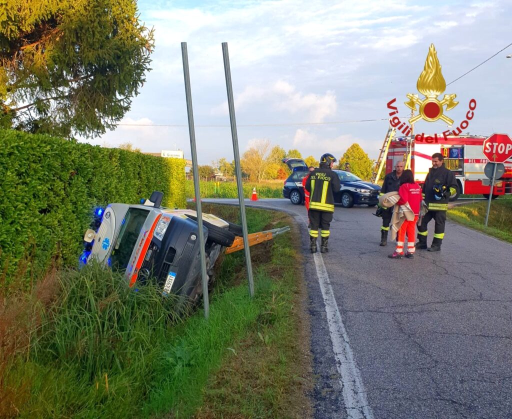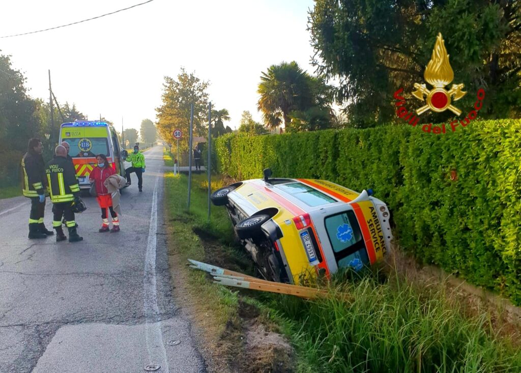 Portogruaro, ambulanza con paziente a bordo finisce fuori strada