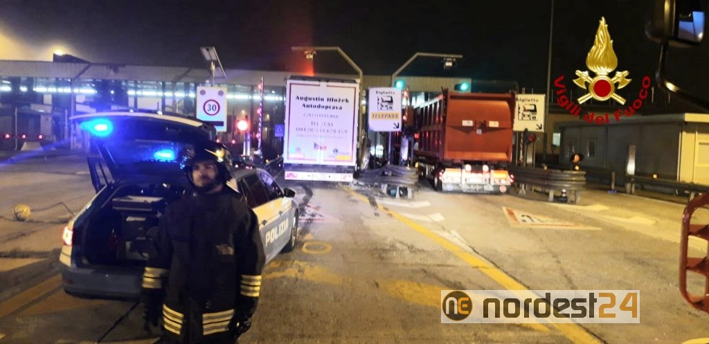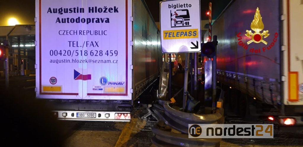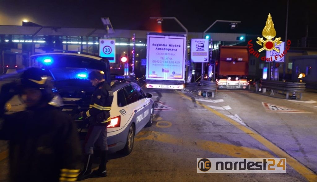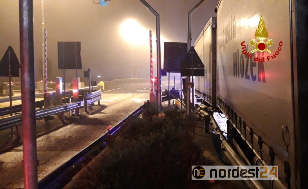 Il camionista di nazionalità Ceca nel rovinoso ingresso, ha danneggiato parte della struttura del casello e della segnaletica che è stata abbattuta.