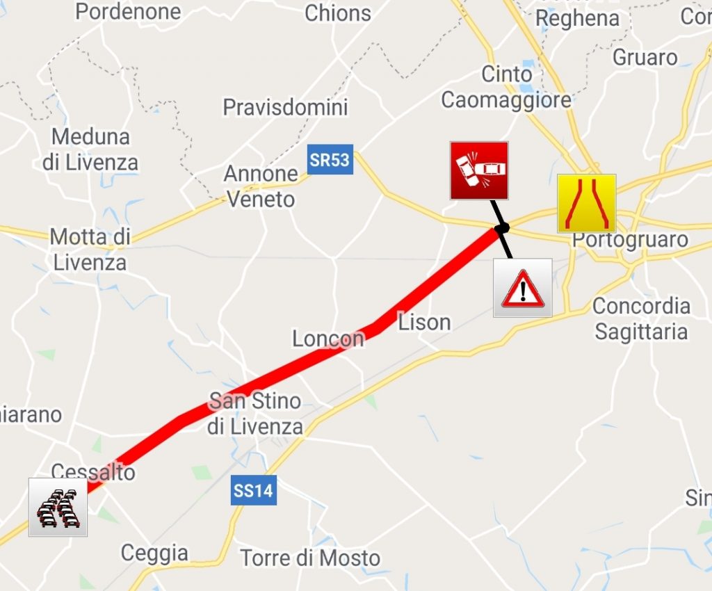 Incidente poco prima delle 7,00 di oggi sull’autostrada A4 nel tratto tra San Stino di Livenza e il Nodo di Portogruaro in direzione Trieste.
