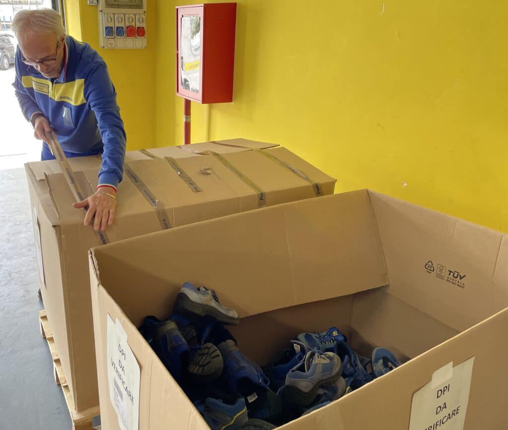 Grazie alla creatività e alla coscienza ecologica di alcuni lavoratori, le scarpe dismesse dai portalettere diventano una risorsa per la comunità. Le scarpe vengono raccolte ogni due mesi nei centri di recapito di Poste Italiane e trasportate al centro di smistamento di Venezia, dove vengono preparate per essere riutilizzate. Questo progetto contribuisce alla transizione green di Poste Italiane, che mira a ridurre l'impatto ambientale e a favorire il riciclo, diminuendo la quantità di rifiuti destinati alle discariche.