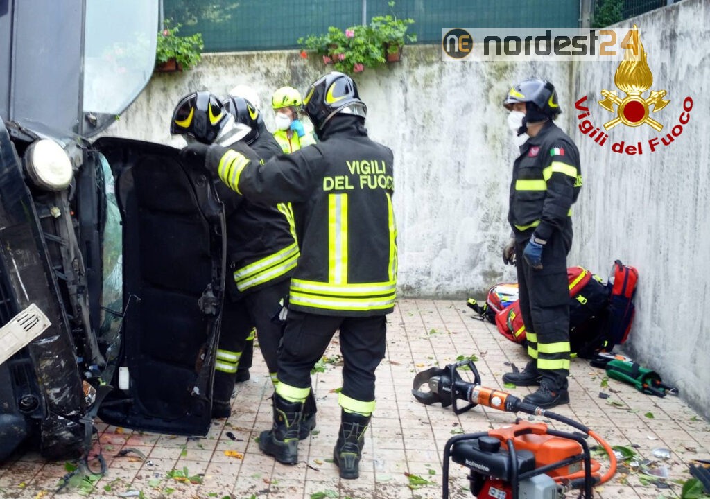 Gravemente ferito il conducente. I pompieri arrivati da Padova hanno messo in sicurezza la Volkswagen Lupo, finita su un fianco e utilizzando cesoie, divaricatori e martinetti idraulici estratto l’autista 51 enne.