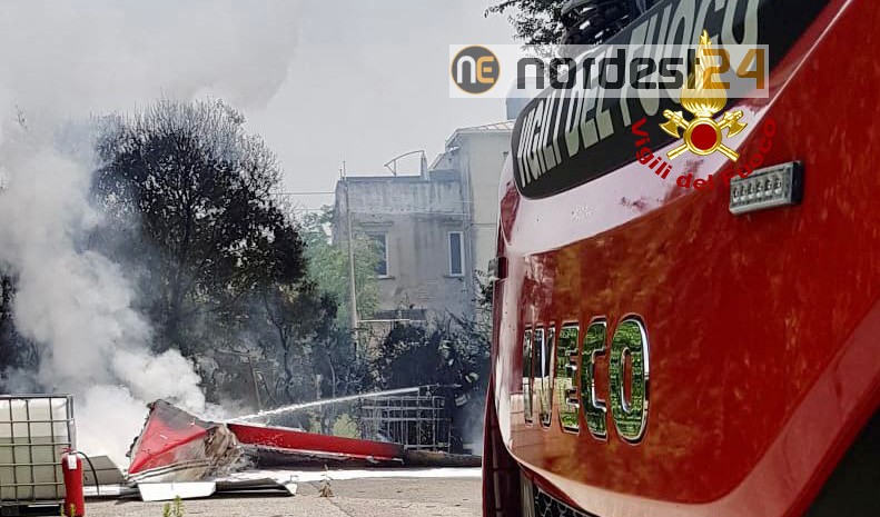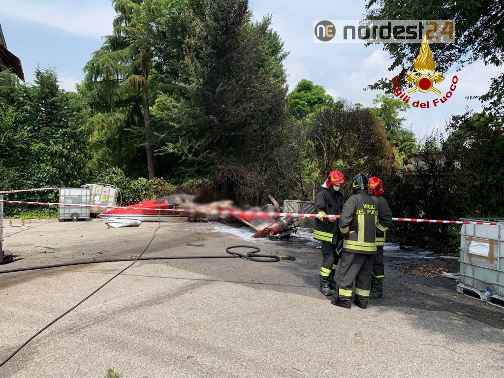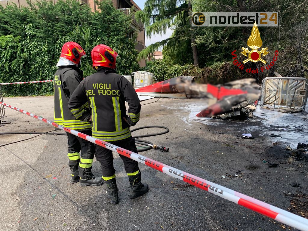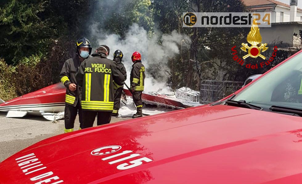 I vigili del fuoco arrivati con due autopompe, due autobotti e 12 operatori coadiuvati dal funzionario di turno e dal comandante Cristiano Cusin, hanno spento l’incendio dell’aereo la cui colonna di fumo era visibile fin da lontano.