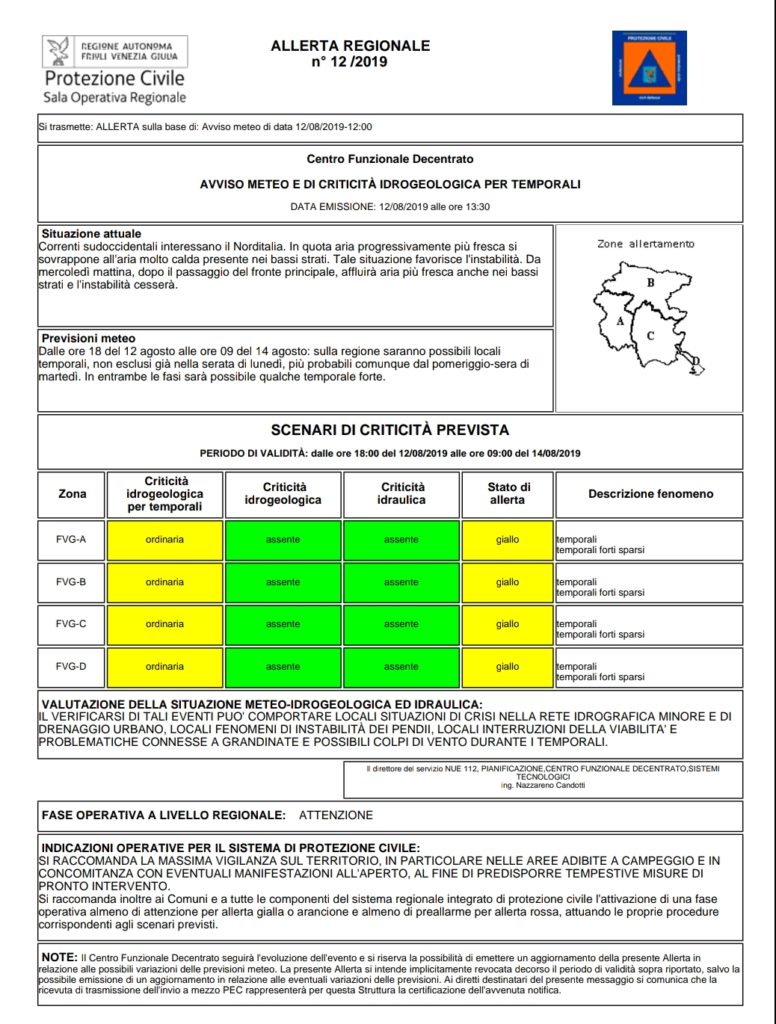 Sebbene la fenomenologia risulterà sparsa non colpendo ogni località, la probabilità di grandinate, raffiche di vento e forti piogge é elevata, pertanto qualche accorgimento a titolo precauzionale meglio adoperarlo ove possibile.
