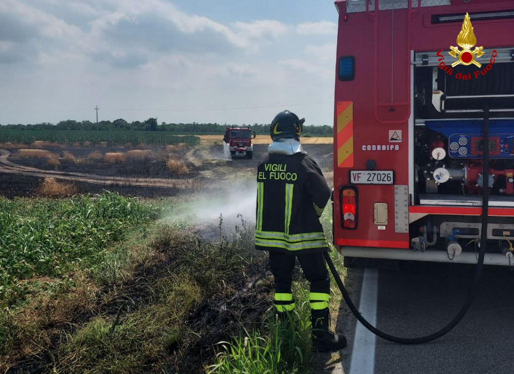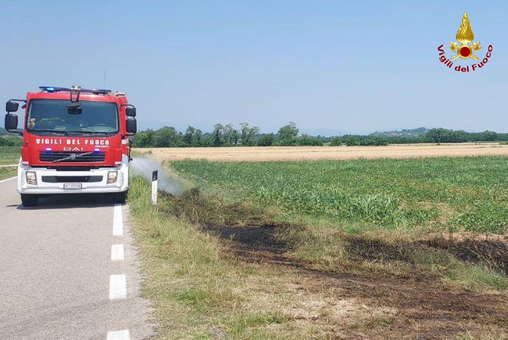 Le altre tre richieste d’intervento sono giunte al comando dei Vigili del fuoco di Udine. La prima segnalazione, giunta alle 13 circa, riguardava un campo di cereali che stava bruciando a Coseano (UD) per questo incendio sono state attivate le squadre dei distaccamenti di Codroipo(UD) e Spilimbergo (PN) che supportate anche da un autocarro a trazione integrale allestito per la lotta agli incendi boschivi giunto dalla sede centrale del comando di Udine hanno spento le fiamme e bonificato l’area in poco meno di due ore riuscendo a limitare l’area incendiata a circa 4500 metri quadrati.