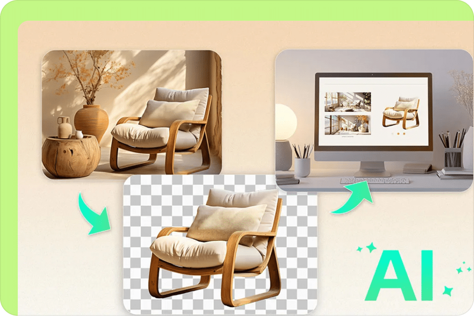 Inoltre, puoi scegliere tra modelli di sfondo AI predefiniti, come Parigi, montagne o interni di case, per rendere le tue immagini più accattivanti. Grazie alla sua precisione, non dovrai preoccuparti dei dettagli più fini, come le ciocche di capelli, ottenendo così un risultato impeccabile e naturale.