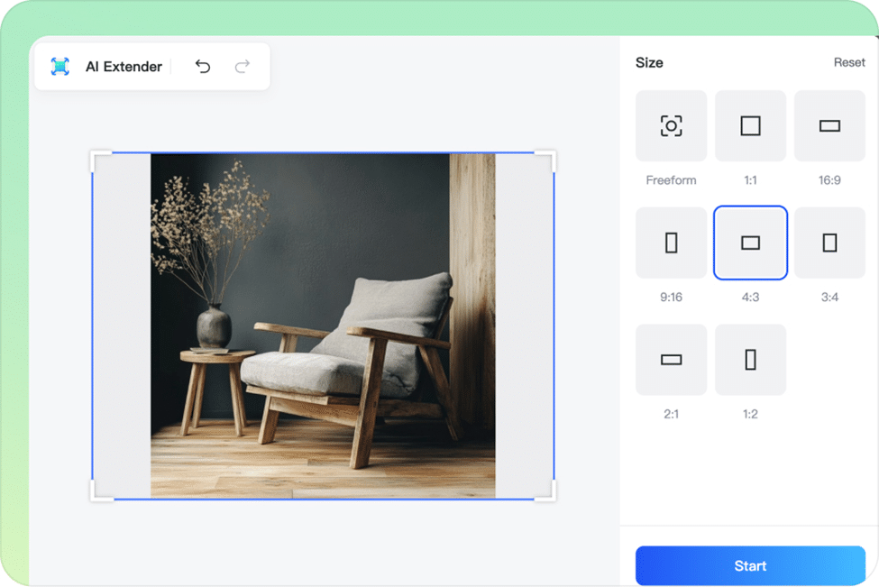 Ora non dovrai più allungare un'immagine per adattarla al formato, rovinandone la qualità. L'espansore di immagini AI di insMind è la soluzione perfetta quando i bordi delle immagini vengono tagliati o quando le foto non risultano come desiderato. Grazie a questo strumento, puoi estendere lo sfondo senza distorsioni mantenendo la qualità.