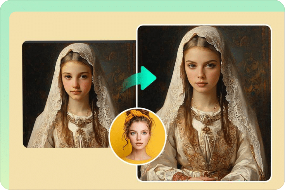 Inoltre, puoi restaurare vecchie foto dei tuoi cari per conservarne i ricordi. Questo strumento ti permette anche di eliminare sfocature, migliorare le tonalità e il contrasto delle immagini. Prima del download, puoi anche modificare qualità e risoluzione.