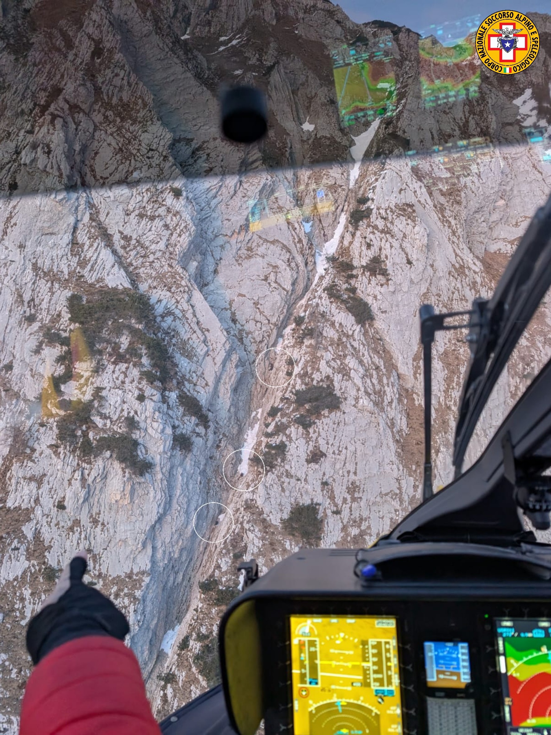 L'elicottero Falco 2, decollato da Belluno, ha avviato una lunga ricognizione. Dopo vari tentativi, i tre giovani sono stati individuati nel ripido canale tra il Monte Pianina e il Sestier, in prossimità di salti di roccia pericolosi. Non è ancora chiaro se l'incidente sia stato causato da un errore di percorso o dalla rottura di un cornicione sotto i loro piedi.