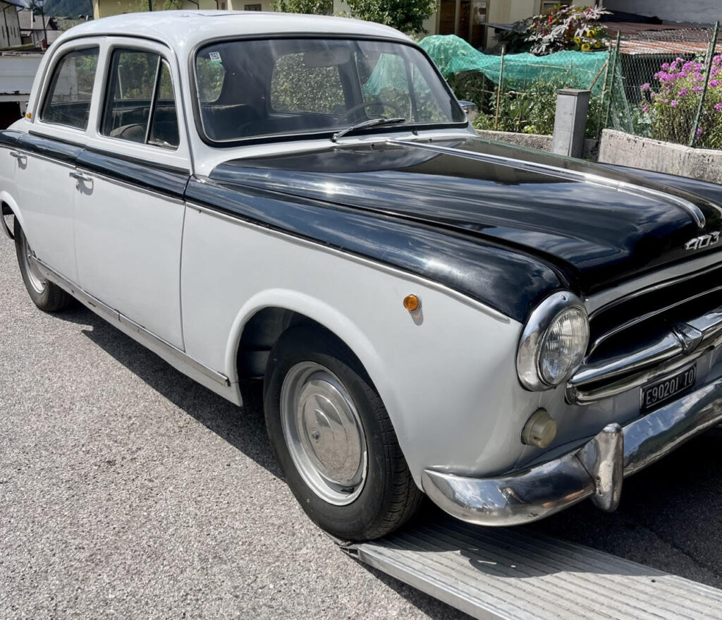 La Peugeot 403 è stata acquistata da Froogs Srl, un'importante azienda editrice di TiLancio, una rinomata agenzia di stampa quotidiana. Dopo un lungo periodo di ricerca, l'auto è stata posizionata con orgoglio di fronte alla sede dell’azienda, situata a San Giorgio di Resia. Questo edificio è una chiesa sconsacrata costruita subito dopo il terremoto del 1976 e successivamente ristrutturata da Froogs, che ha deciso di trasformarla in una location unica per questa affascinante esposizione.