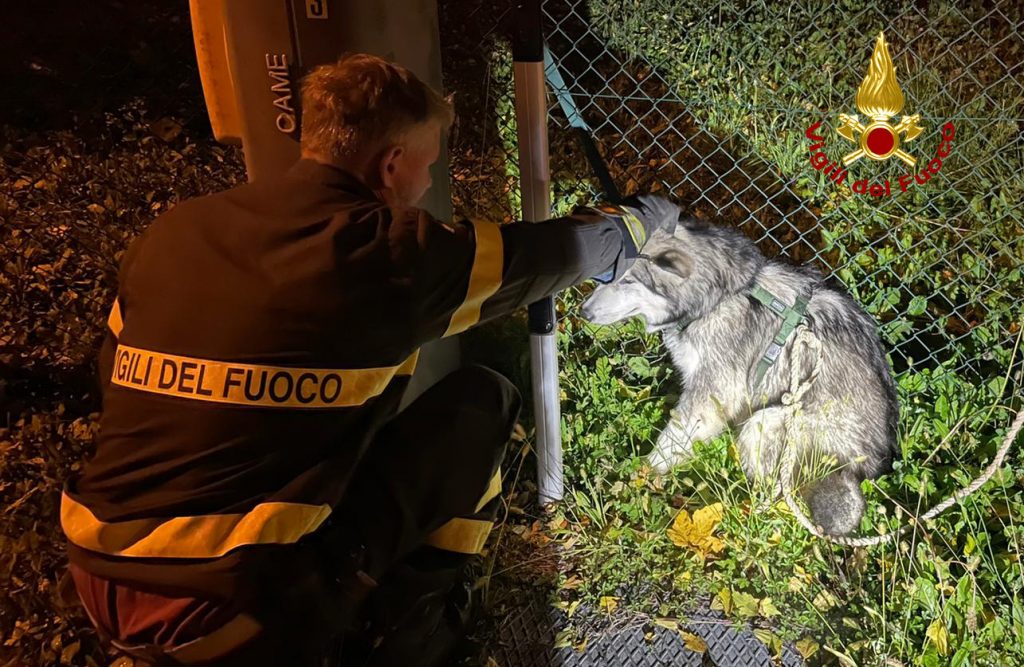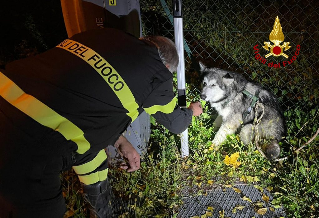 SCHIO (VI). Martedì sera 2 novembre 2021, dopo le 21.00, un cucciolo di Husky è finito in un canale di scolo ed è stato salvato dai vigili del fuoco.