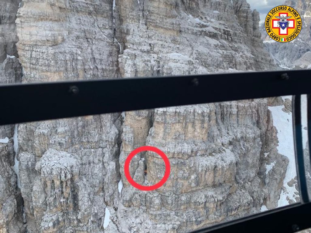 Individuato sulla parete dall'equipaggio dell'elicottero del Suem di Pieve di Cadore, A.C., 35 anni, di Torino, è stato recuperato dal tecnico di elisoccorso con un verricello di 40 metri ed è stato trasportato all'ospedale di Belluno, a seguito della probabile lussazione riportata.