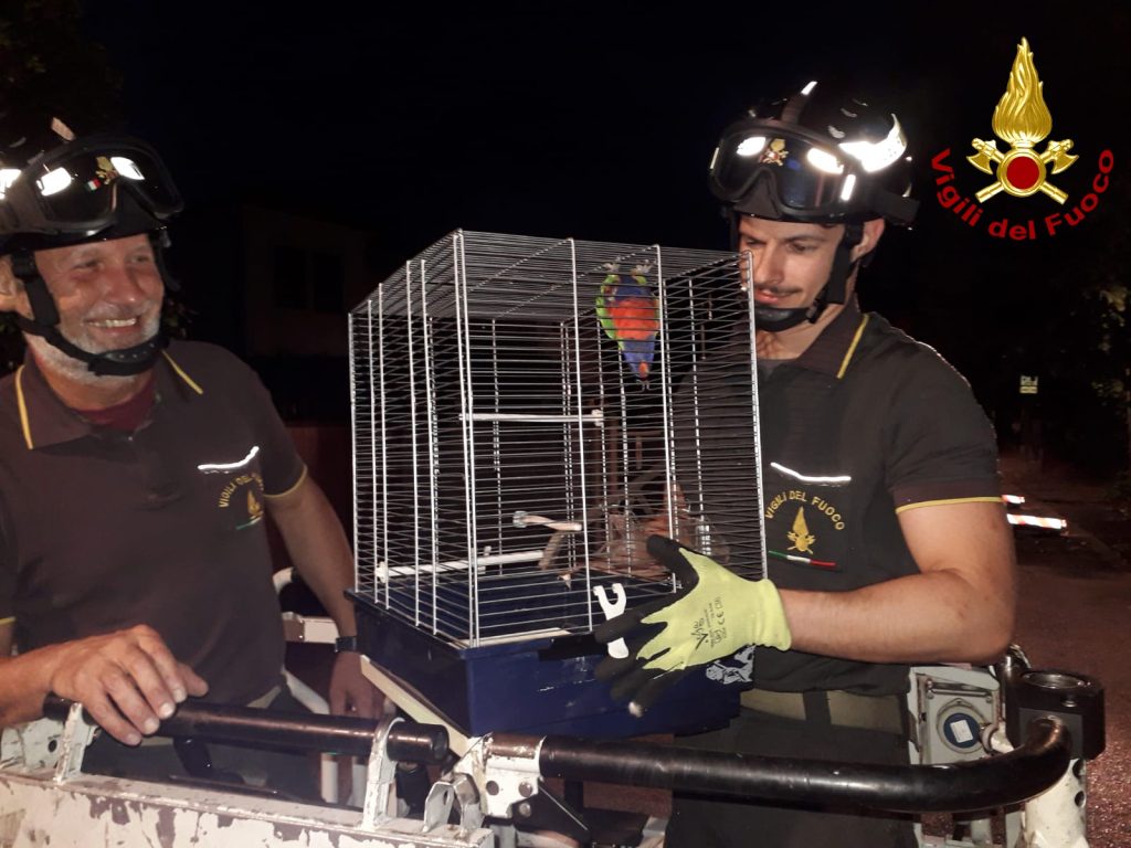 È stato necessario l'intervento dei Vigili del Fuoco di Vicenza per mettere in salvo “Cora” un pappagallino rimasto bloccato su un albero in Via delle Rimembranze a Lerino di Torri di Quartesolo.