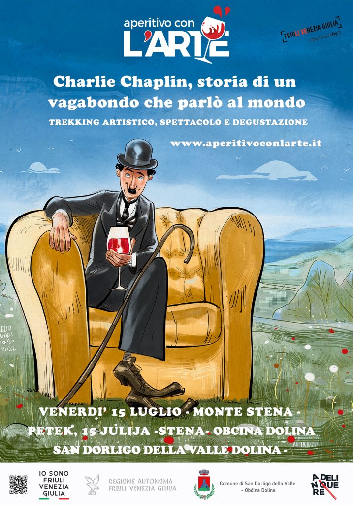 Ritorna sul Carso Triestino venerdì 15 luglio, a San Lorenzo-Jezero e sul Monte Stena con un evento dal titolo “Charlie Chaplin, storia di un vagabondo che parlò al mondo”la nuova edizione dell'"Aperitivo con l'arte” a cura dell'Associazione Culturale Adelinquere, in una nuova forma itinerante; battezzata “I sentieri dell'Aperitivo con l'arte” toccherà tutta la regione. L’Aperitivo con l’Arte dedicherà la prossima serata al grande comico. Dall’infanzia difficile fino al celebre discorso fatto al mondo nel film “Il grande dittatore”, rivivremo la parabola ascendente di un genio e i primi film muti accompagnati da musica di improvvisazione (secondo gli schemi di allora) in stile Anni Venti eseguita al pianoforte da Riccardo Morpurgo.