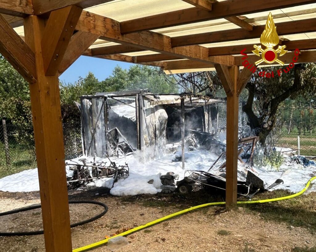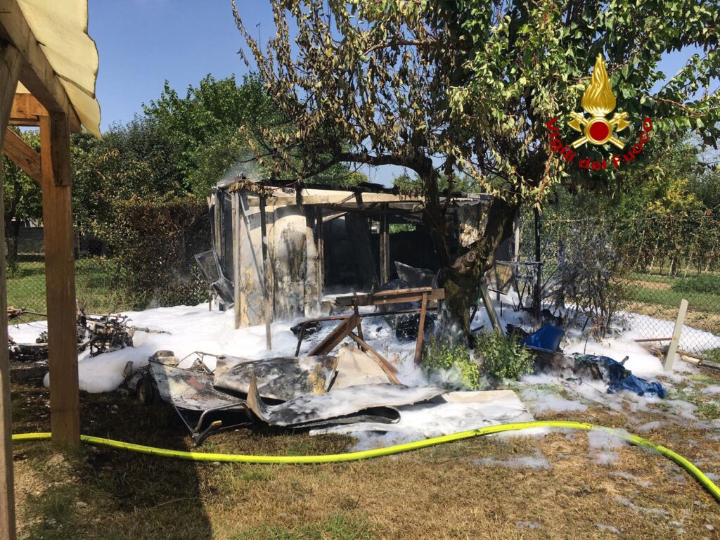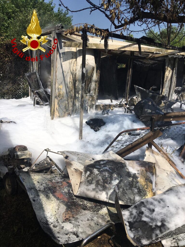 Roncade (TV). Fiamme dallo scooter, l'incendio si estende ad un ricovero di attrezzi | FOTO