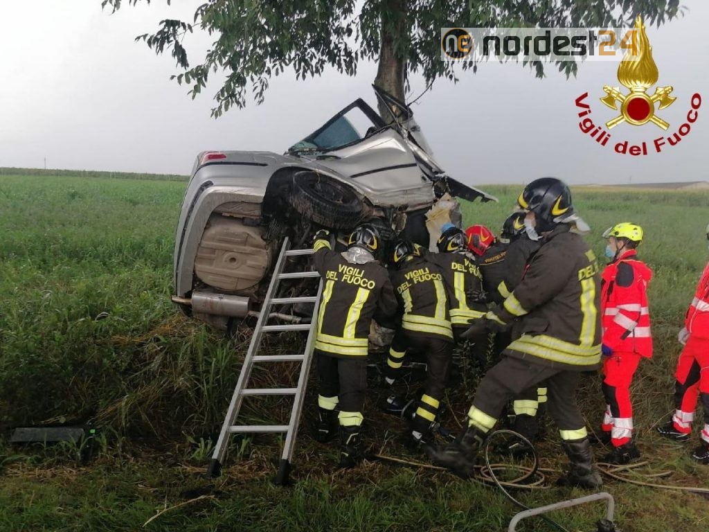 Roveredo in Piano (PN). Nel pomeriggio di oggi domenica 8 agosto 2021 alle ore 18:40 la squadra dei Vigili del Fuoco di Maniago è intervenuta per un incidente stradale lungo via Garibaldi, a Roveredo in Piano in provincia di Pordenone dove l'autovettura uscita di strada si è accartocciata ad un albero "imprigionando" l'autista.