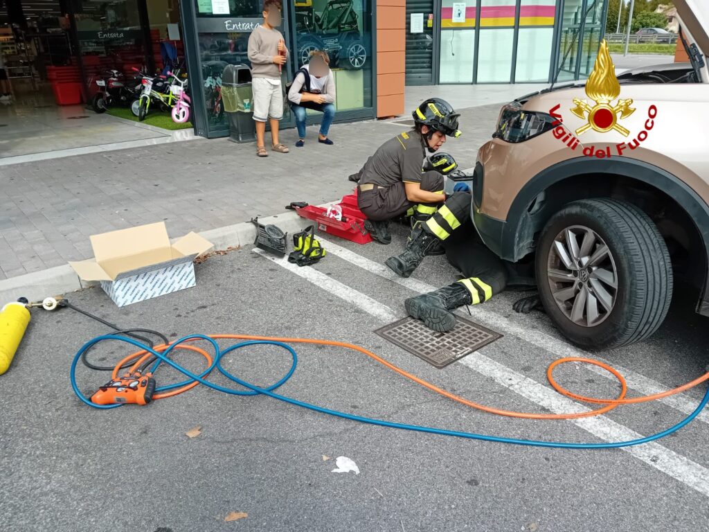 Gattino intrappolato nel vano motore di un'auto: salvato dai vigili del fuoco