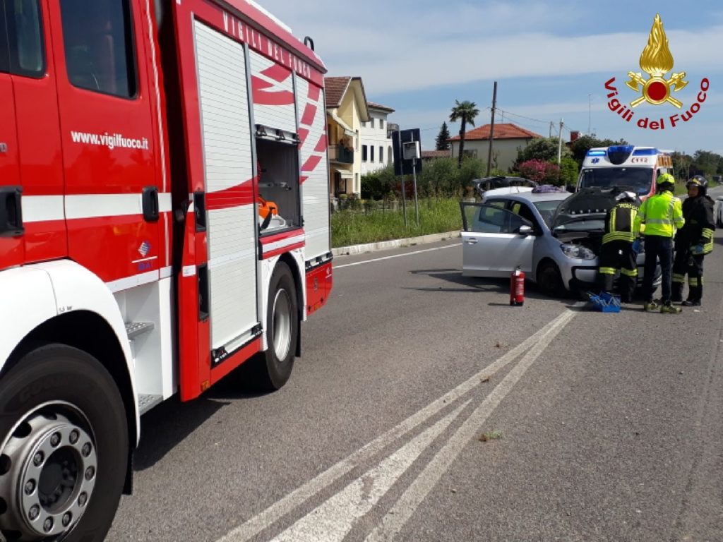 La Prima Partenza dei Vigili del Fuoco di Pordenonge è intervenuta per un incidente stradale in Viale Trento a Sacile.