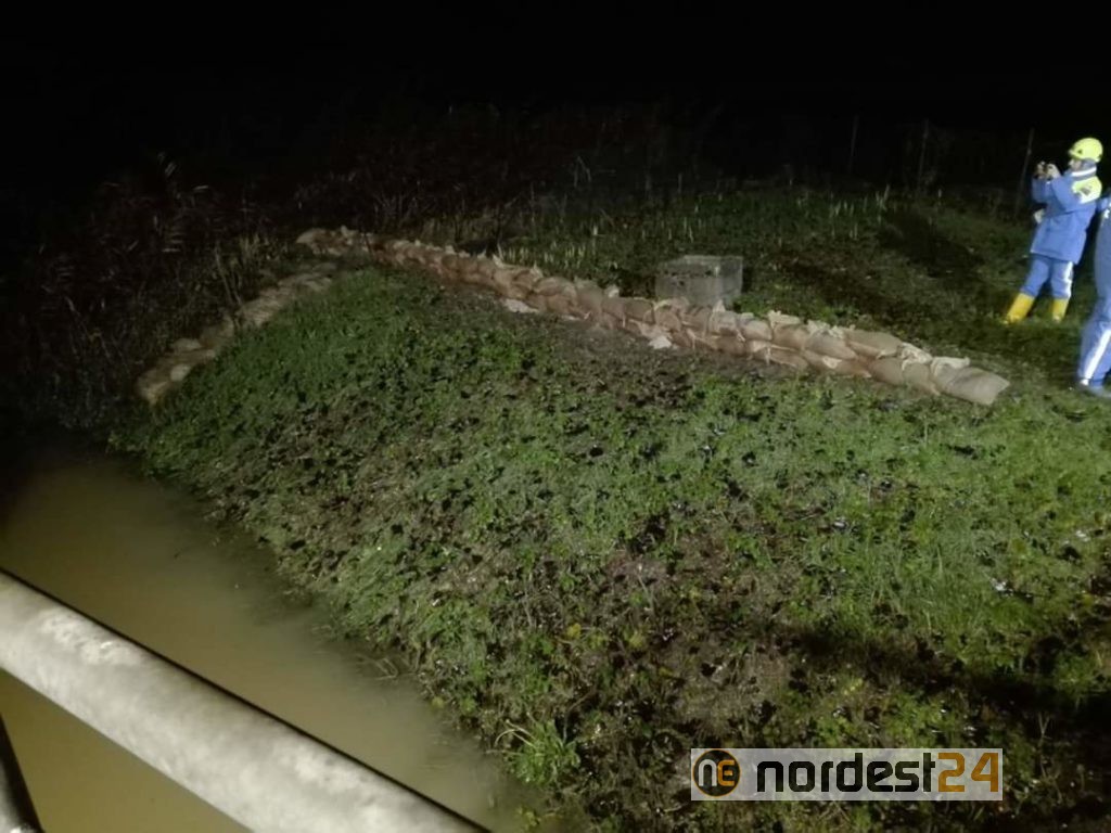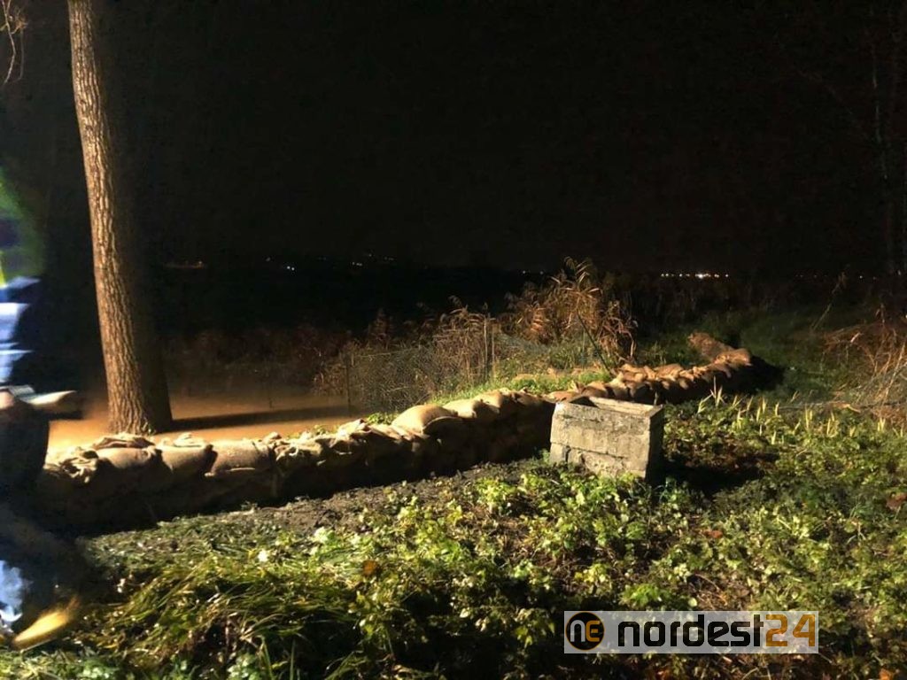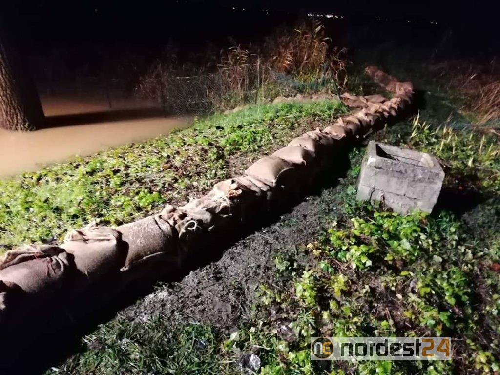 Sono stati posizionati 120 sacchi di sabbia per arginare la possibilità di esondazione del corso d'acqua.