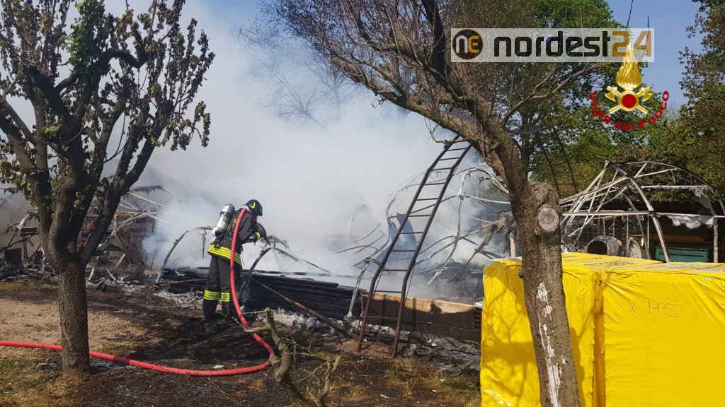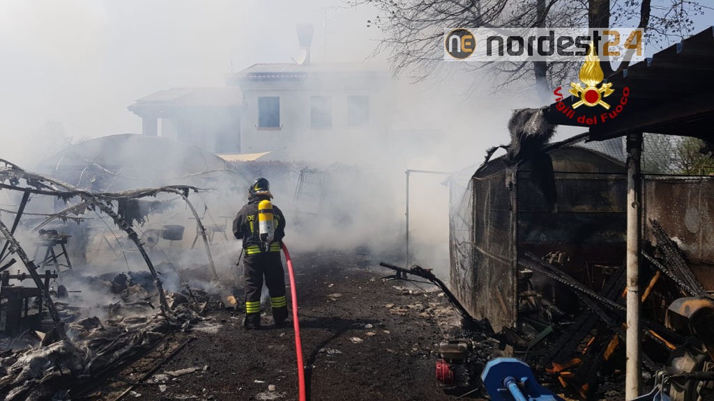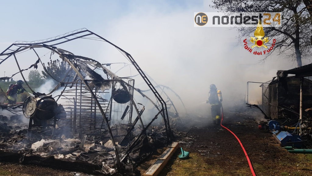 San Donà di Piave. Incendio in una serra, distrutta dalle fiamme - FOTO