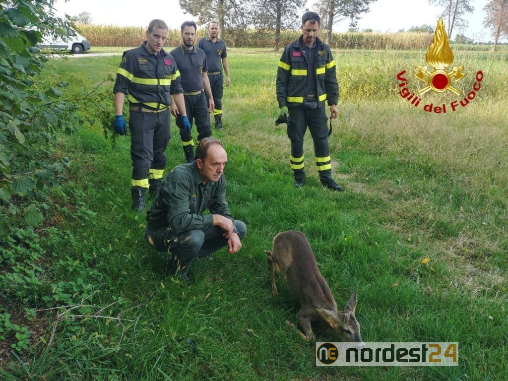 San Quirino. Scivola nel canale: capriolo salvato da morte certa