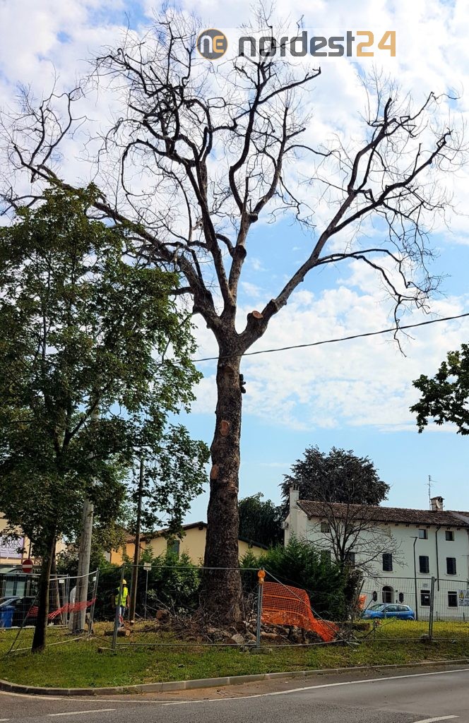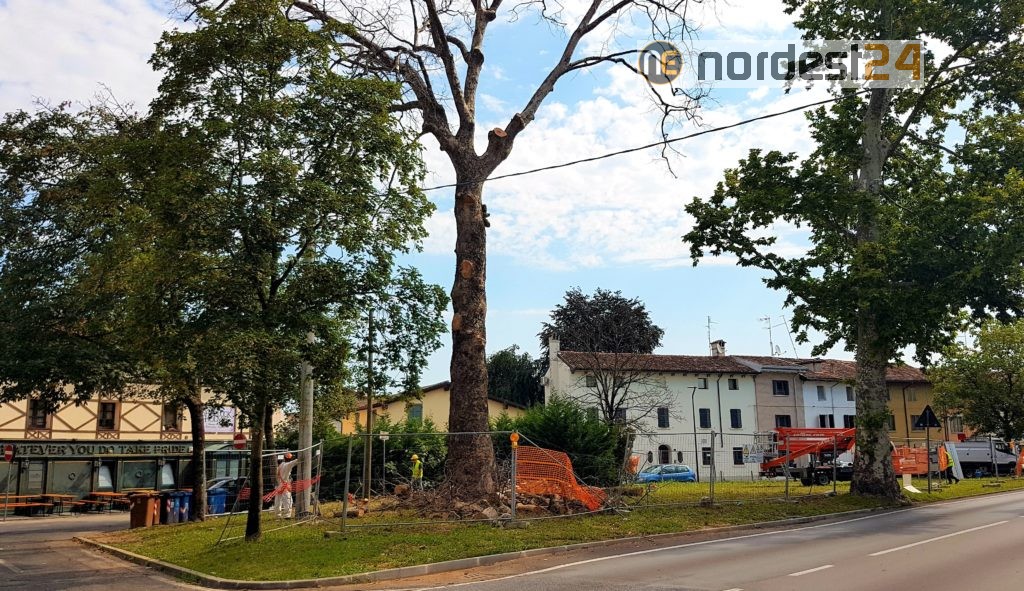 San Vito al Tagliamento, 22 luglio 2020 – Questa mattina è entrata in azione una ditta specializzata incaricata da Eni per le operazioni di taglio del maestoso albero che caratterizzava l’area dell’ex stazione di servizio di viale del Mattino.