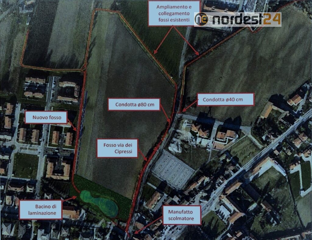 Il nuovo progetto comunale - prosecuzione del Piano anti allagamento del 2018 - vede un investimento di circa 880 mila euro, dei quali 670 mila euro sono finanziati con l’avanzo di bilancio comunale, la parte restante li ha stanziati la Regione FVG. In generale, il programma di interventi prevede di ricavare un bacino-parco di laminazione tra via dei Cipressi e via Matteotti; il rifacimento del comparto a nord della zona dei fossi; alcuni interventi sul piazzale di Rosa; la riqualificazione dei fossati a nordest del santuario di Madonna di Rosa verso via Progresso (con scarichi nella Roggia Mussolera). Saranno risolti anche i problemi di via Agreste con un bacino di laminazione su via Oberdan. Le opere si svolgeranno in più fasi e prenderanno il via dal 7 gennaio 2021 a Madonna di Rosa, per terminare in primavera.