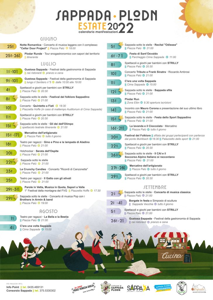 La prima è “C’era una volta sappada”, un evento unico nel suo genere in cui gli ospiti scopriranno i mestieri, le abitudini e l'atmosfera della vita quotidiana di una volta a Cima Sappada. La borgata si trasformerà e saremo ammirati dai costumi, dai dialoghi e dalle interpretazioni dei figuranti. La seconda novità è Sappada sotto le stelle: ogni venerdì di luglio e agosto, lungo il centro del paese, si alterneranno spettacoli, musica e stand di artigianato artistico”.