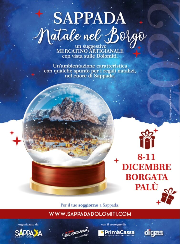 Si parte il giorno dell’immacolata con “Sappada, Natale nel borgo” un evento di 4 giorni che unisce ai mercatini di Natale una serie di iniziative collaterali, sia musicali che gastronomiche con l’esibizione del Coro di Sappada Sorgenti del Piave, del gruppo Crunchy Candies e con le proposte di vari artigiani del gusto. Il 15 si svolgerà la cerimonia di accensione del Tripode di Special Olympics, i campionati nazionali invernali di atleti portatori di disabilità intellettive, in programma dal 15 al 18 dicembre a Sappada.