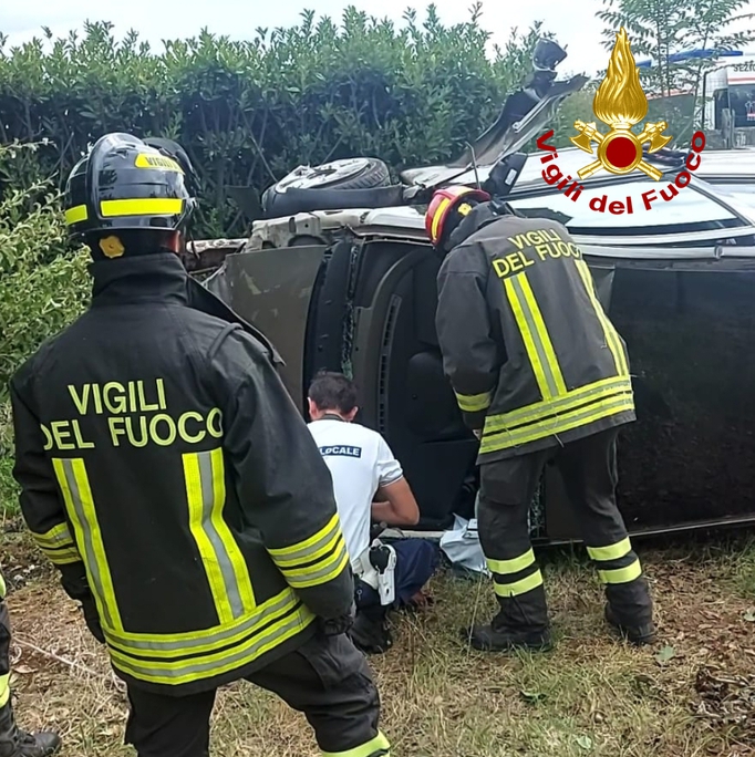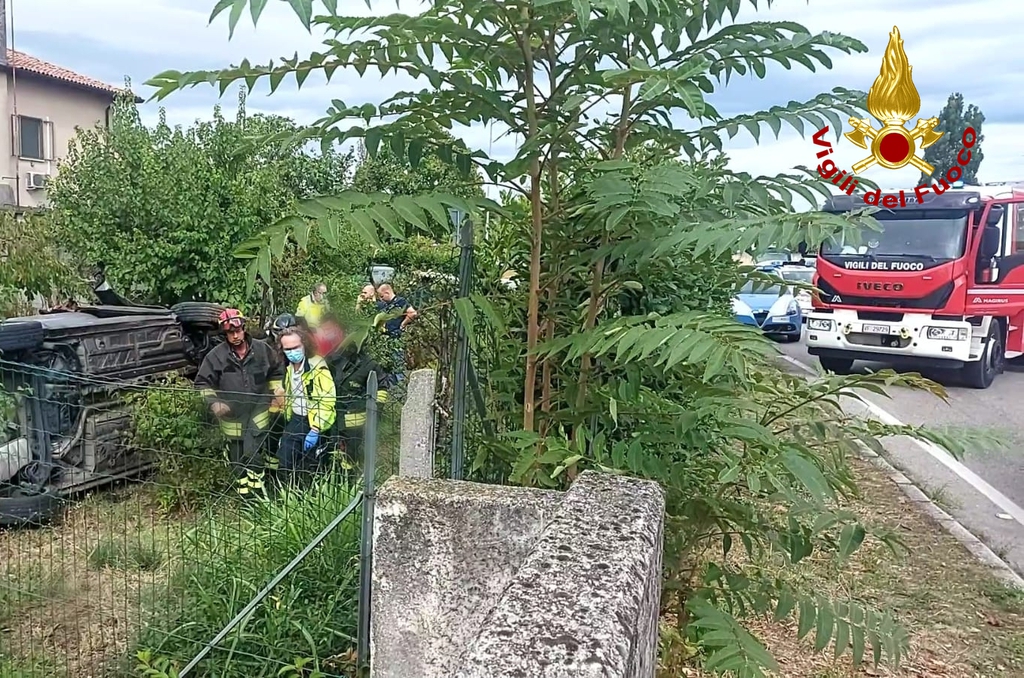 I Vigili del fuoco giunti sul posto hanno trovato una vettura, che per cause in fase di accertamento dalle autorità competenti, era uscita di strada finendo la sua corsa ribaltata su un fianco all'interno di un giardino.