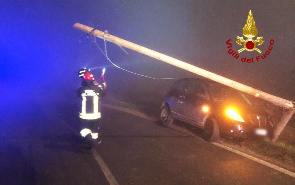 SCHIAVON (VICENZA). Alle 4:00, di domenica 17novembre, i vigili del fuoco sono intervenuti in via Bosella a Schiavon per un palo telefonico abbattuto da un’auto finita fuoristrada dopo la perdita di c...