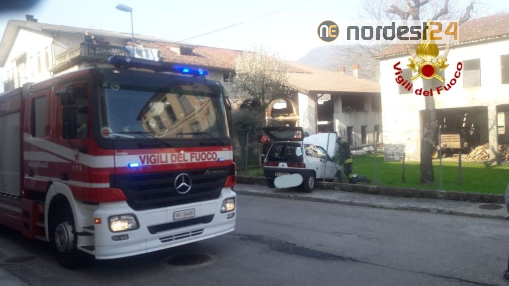 I pompieri arrivati da Schio hanno liberato l’uomo, che dopo aver perso il controllo dell’auto era finito contro una recinzione, rimanendo bloccato con le portiere della vettura tra i due paletti della rete metallica.