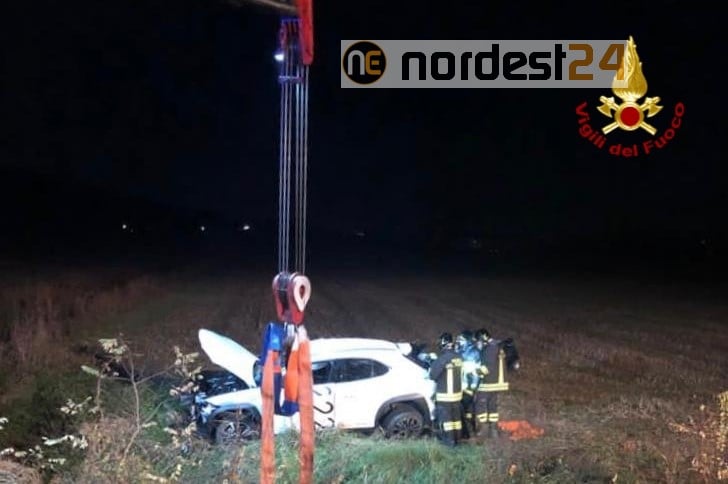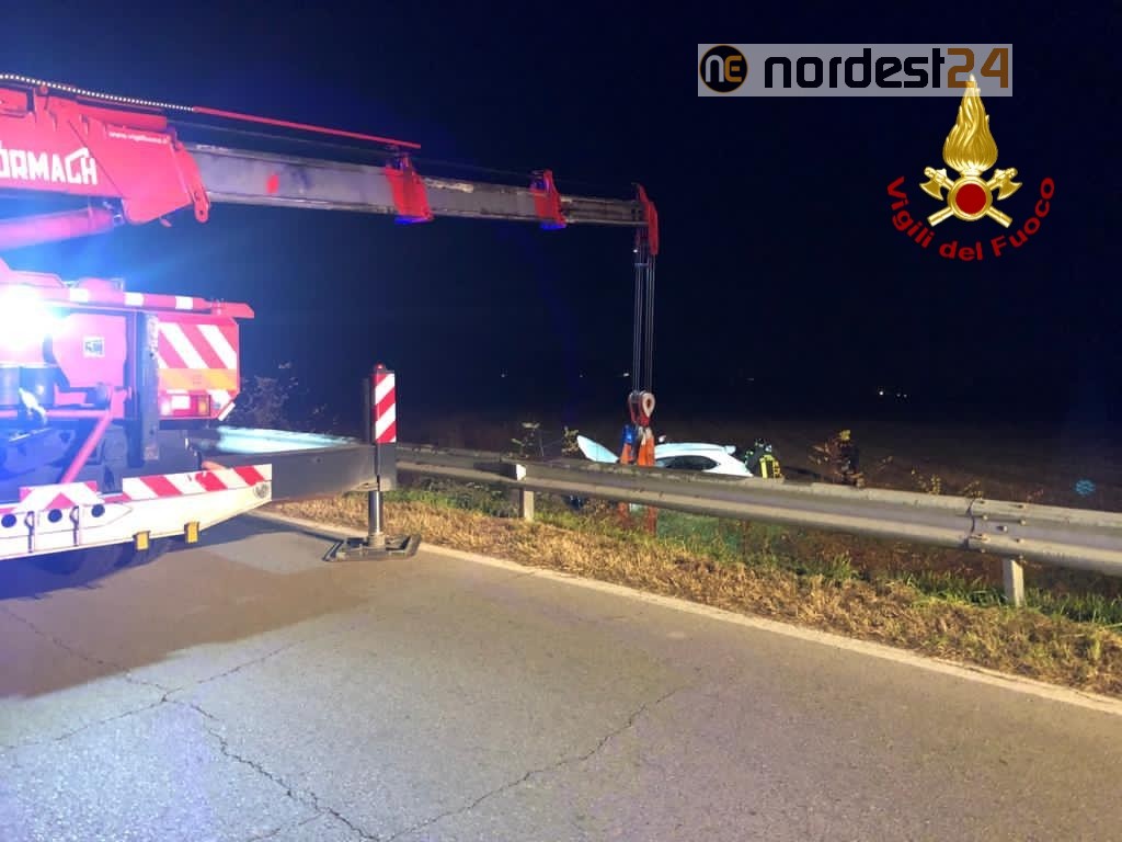 Alle 20:00 di domenica, i vigili del fuoco sono intervenuti lungo la SP21 in Via Prossima a Cinto Euganeo in provincia di Padova per un’auto finita rovesciata sotto il piano stradale: deceduto un 31 enne.