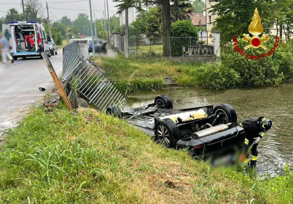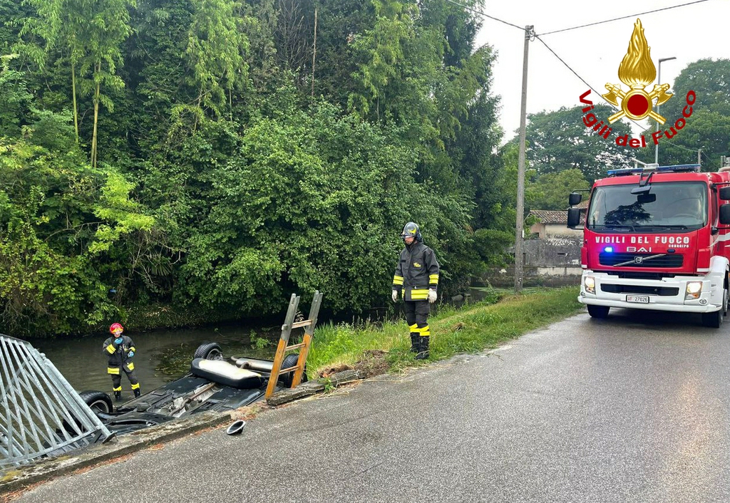 ROMANS DI VARMO. Alle ore 19.10 circa di oggi, 23 giugno 2022, la squadra dei Vigili del fuoco del distaccamento di Codroipo è intervenuta a Romans di Varmo (UD) dove un'autovettura uscita di strada che ha terminato la sua corsa cappottandosi nel letto in secca del Fiume Strangulin.