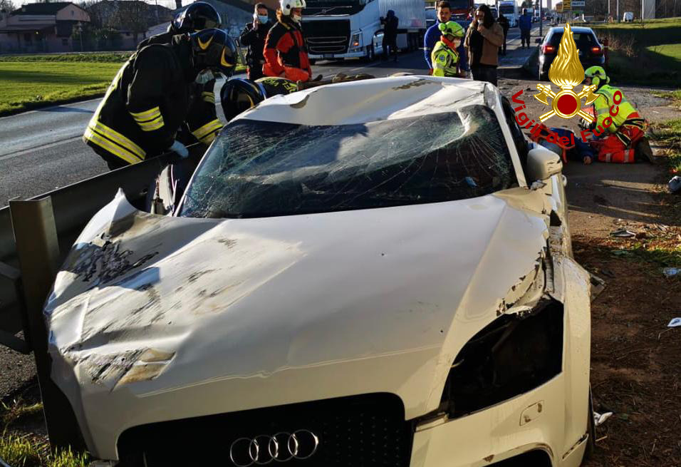 Alle 14:45, i vigili del fuoco sono intervenuti in via Roma nel comune di Saletto in provincia di Padova per un’auto finita contro la cuspide di un guardrail rimanendo infilzata: ferito il passeggero, illeso il conducente.