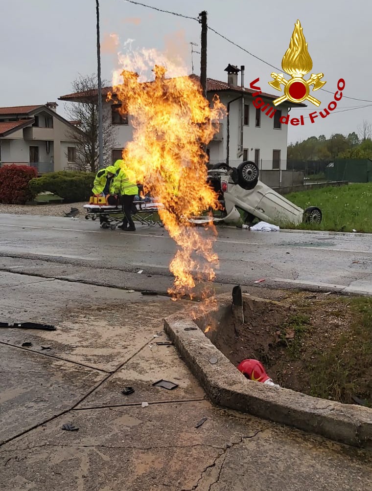 Perde il controllo dell’auto, che trancia un tubo del metano innescando un incendio per poi rovesciarsi dalla parte opposta della strada, rimanendo incastrato con il motore in fiamme; due giovani del...