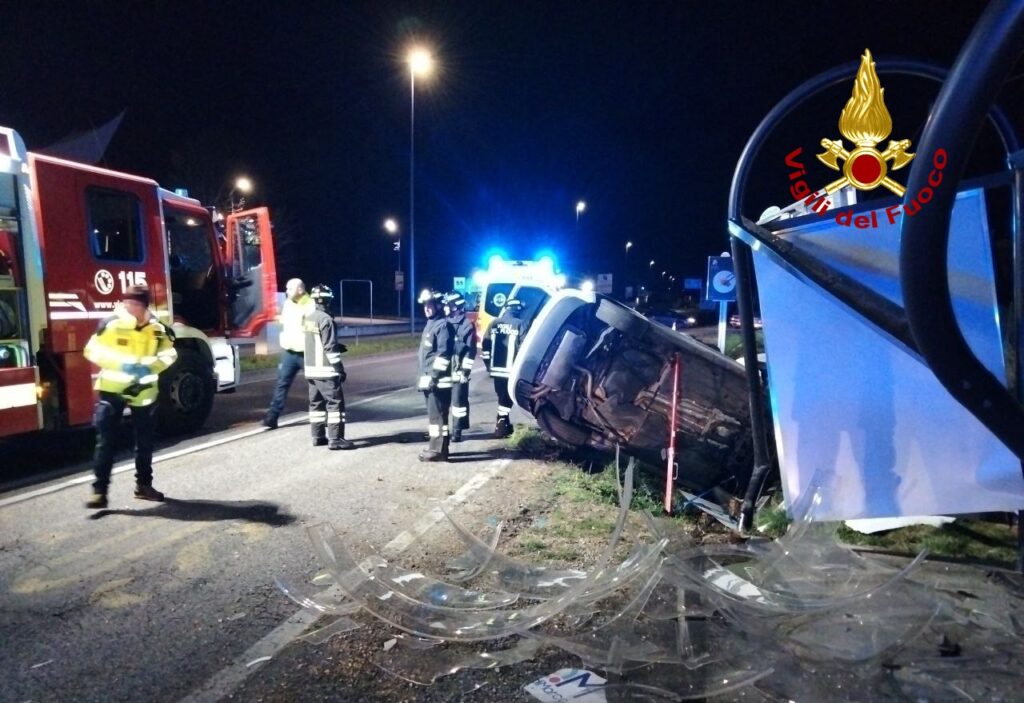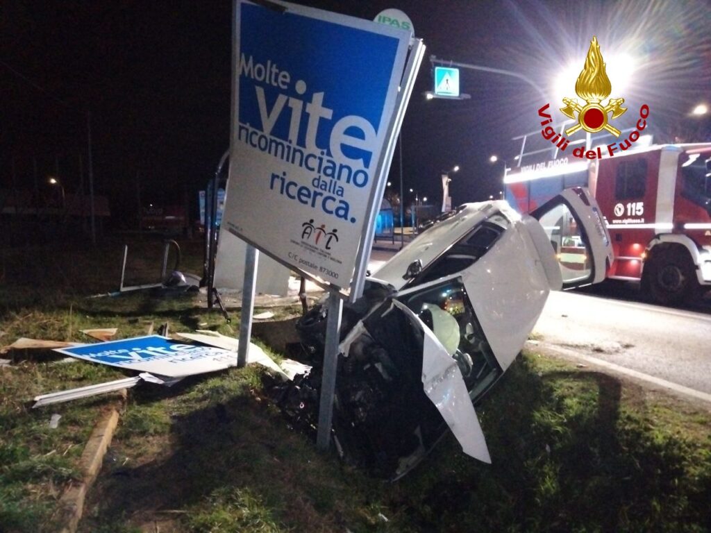 PAESE (TREVISO). Grave incidente questa notte, domenica 12 marzo 2023, poco prima delle 2, in via Postioma a Paese in provincia di Treviso dove un’auto è finita fuori strada in fossato contro dei pali di sostegno della cartellonistica pubblicitaria: ferite le due persone a bordo.