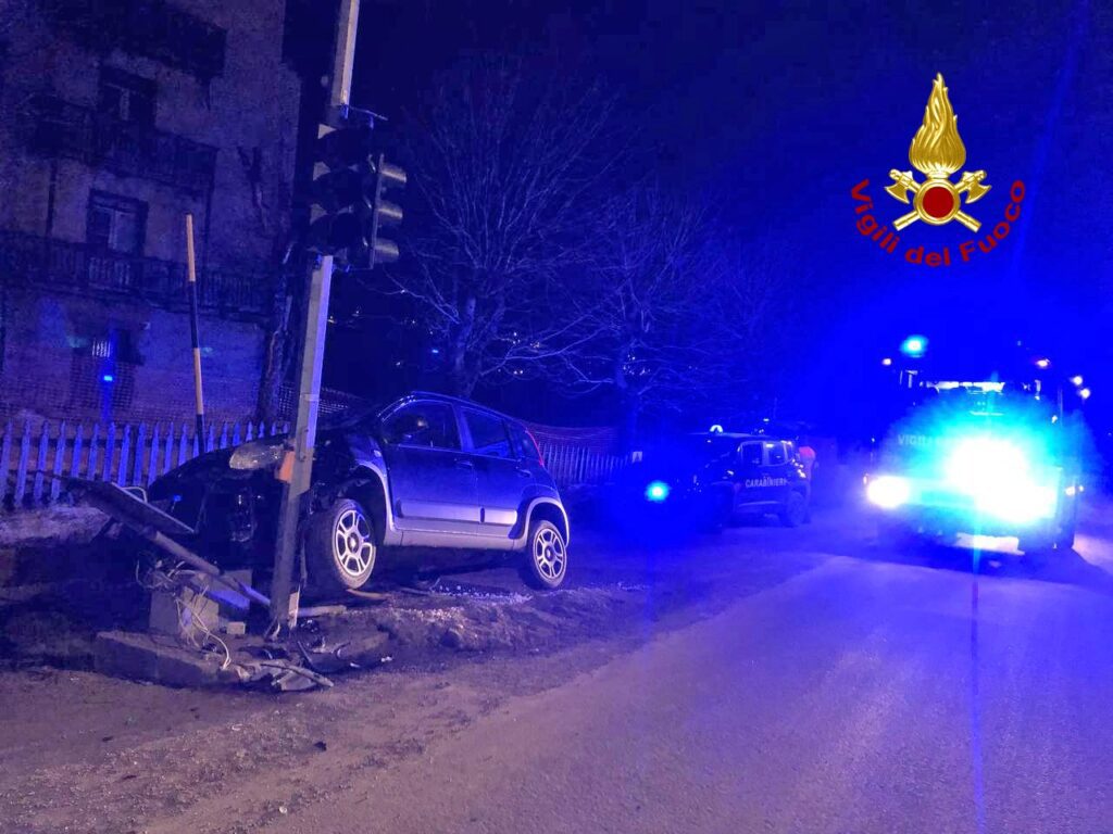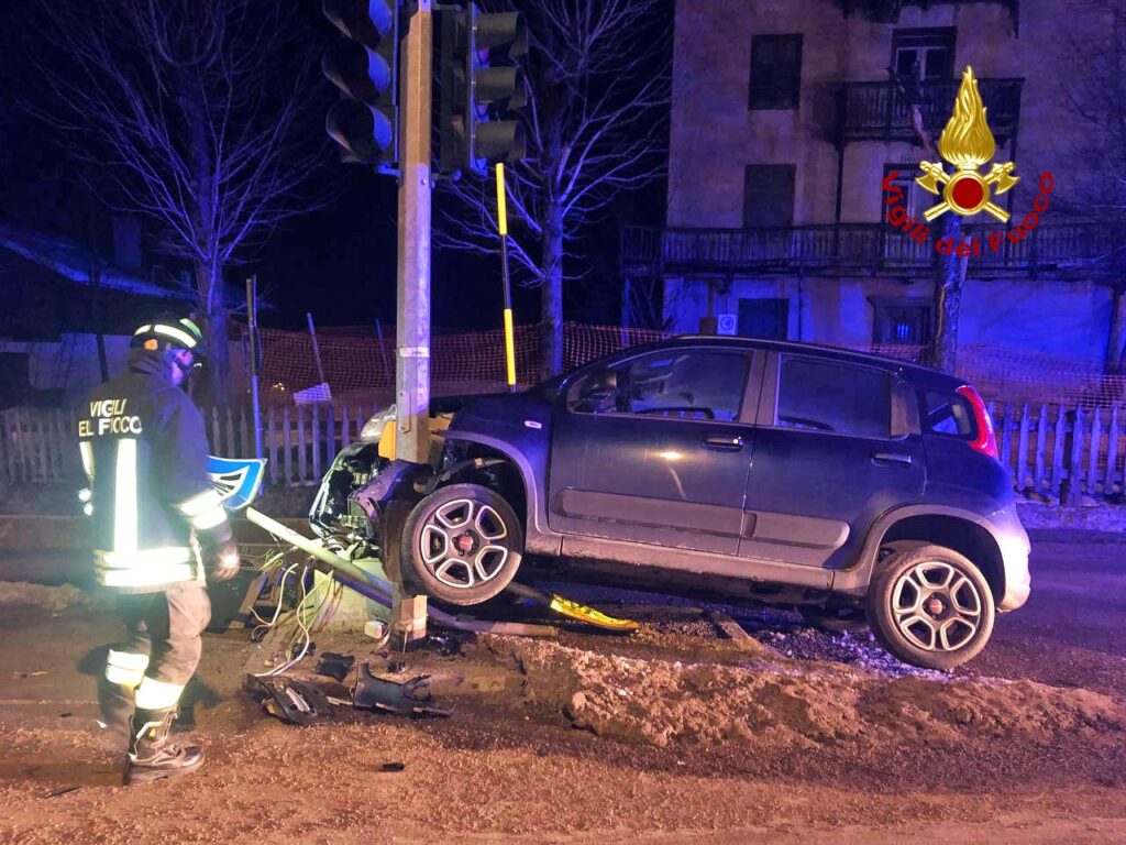 I pompieri accorsi dal locale distaccamento con due automezzi, hanno messo in sicurezza la Fiat Panda ibrida, il palo e l’impianto semaforico, mentre l’autista è stato assistito dal personale sanitario del 118.