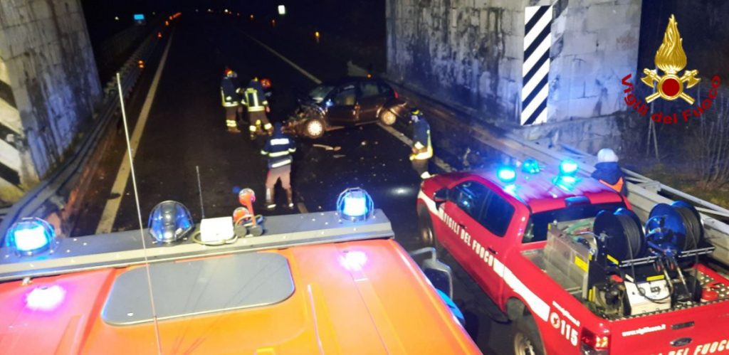 Schianto contro il ponte ferroviario del raccordo autostradale: un ferito