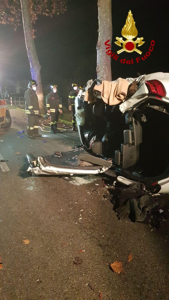 Escono di strada su via Schiavonesca Marosticana e, perdendo il controllo dell’auto, si schiantano contro un platano: è successo questa notte, sabato 20 novembre, alle 4.15 a Maser (TV), nei pressi del distributore Esso.