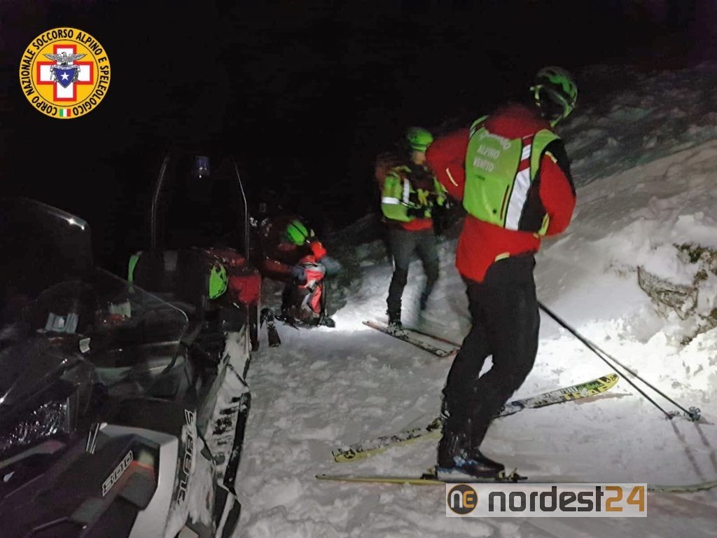 Trascinato per 500 metri, si trovava nella parte finale della discesa e aveva probabilmente riportato una frattura al ginocchio. Una squadra si è avvicinata con i mezzi ai Larici, per poi proseguire con motoslitte, sci e pelli di foca. Una volta sul posto indicato, gli otto soccorritori sono riusciti a individuarlo chiamandolo a voce, dato che il suo cellulare si era nel frattempo scaricato.