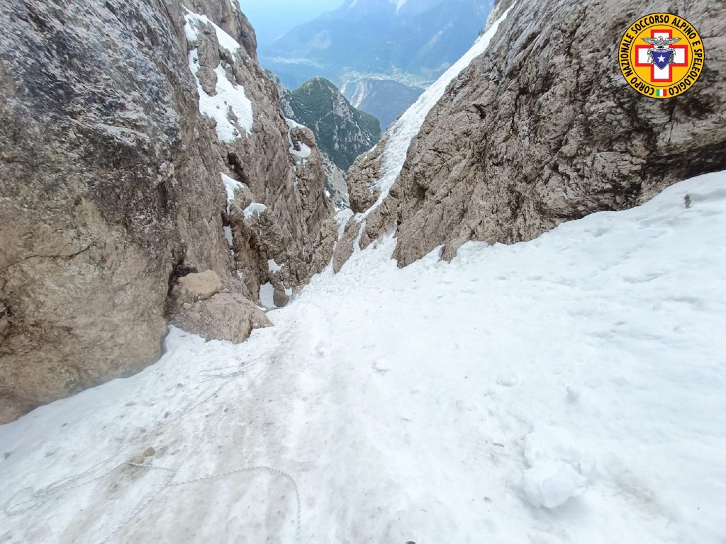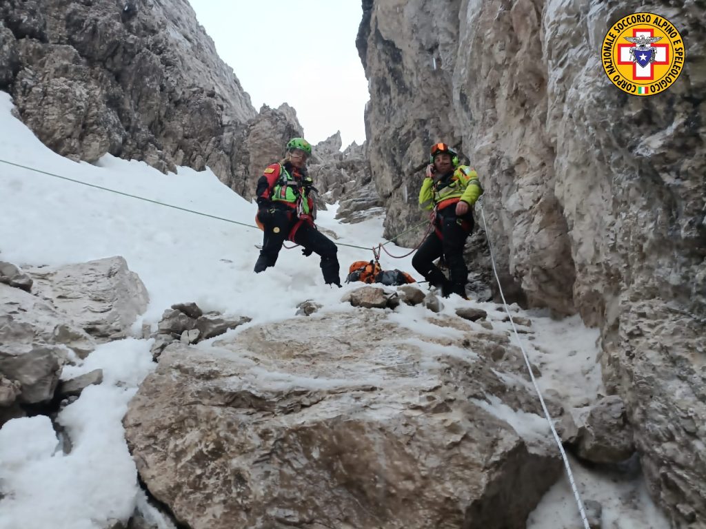Sbarcato con un verricello di 60 metri, il tecnico di elisoccorso ha attrezzato una corda fissa, in attesa dell'arrivo di due soccorritori di Pieve di Cadore, imbarcati dall'eliambulanza in supporto alle operazioni.