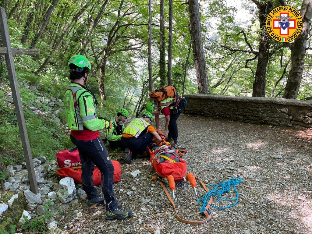 Una volta immobilizzatole il piede, l'escursionista è stata imbarellata e trasportata a monte superando 150 metri di dislivello, per arrivare al rendez vous con l'ambulanza, che la ha accompagnata all'ospedale di Peschiera.
